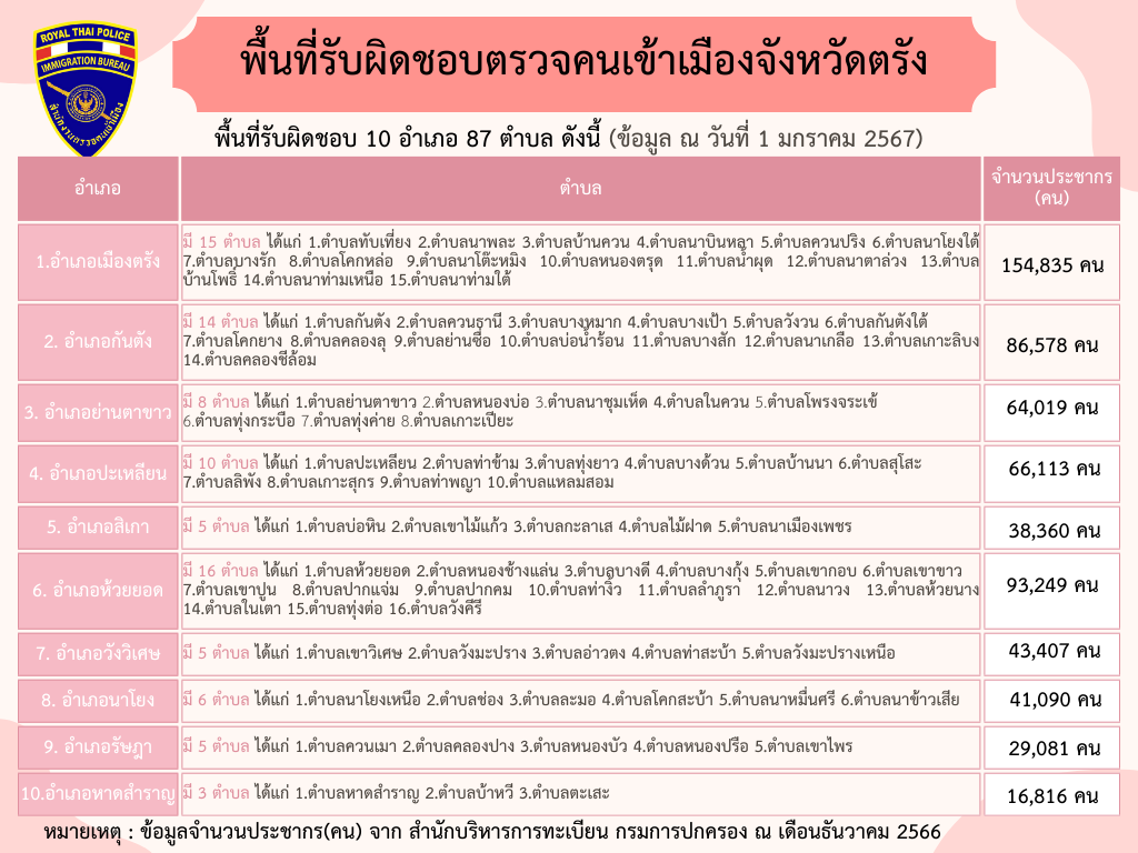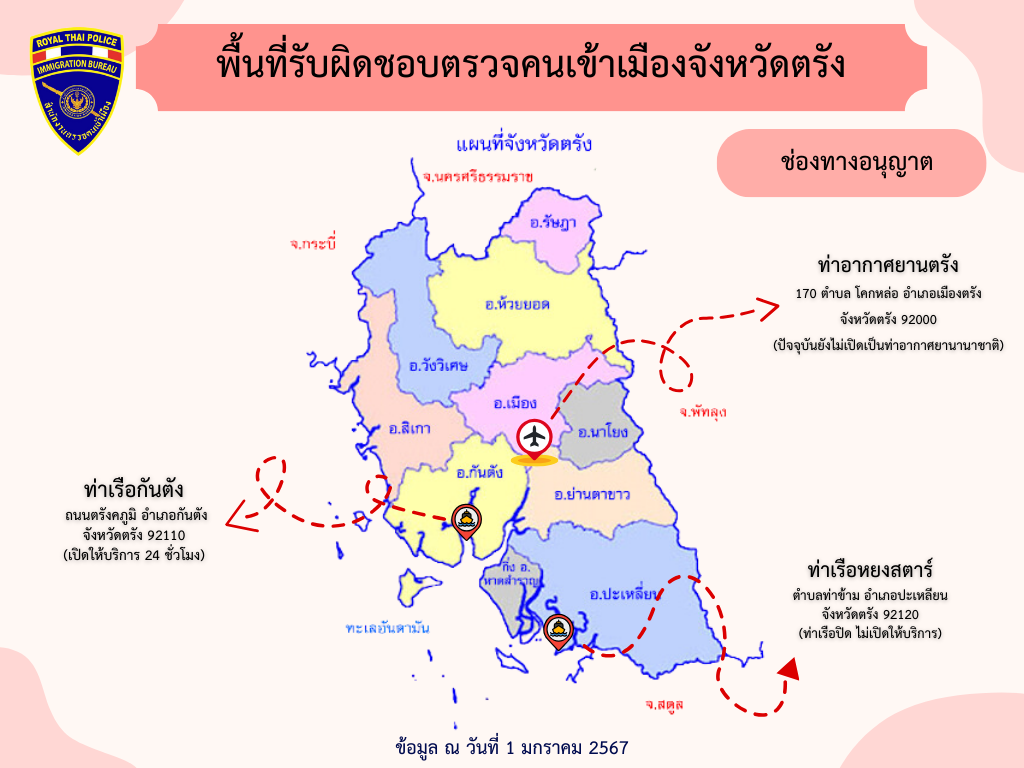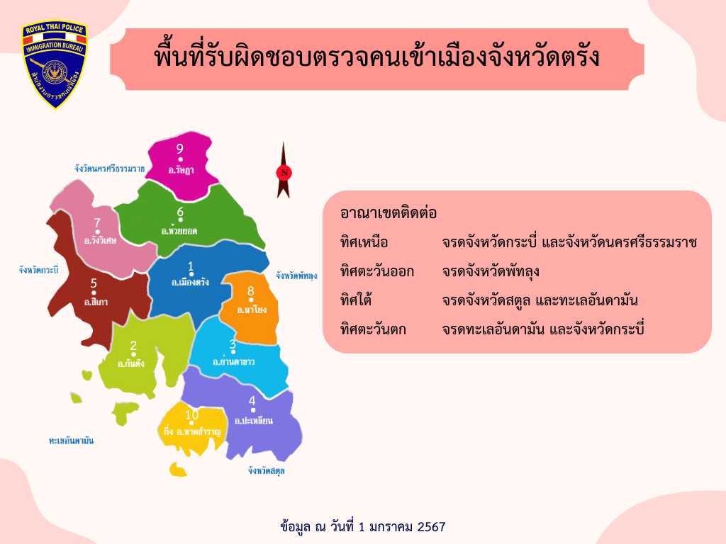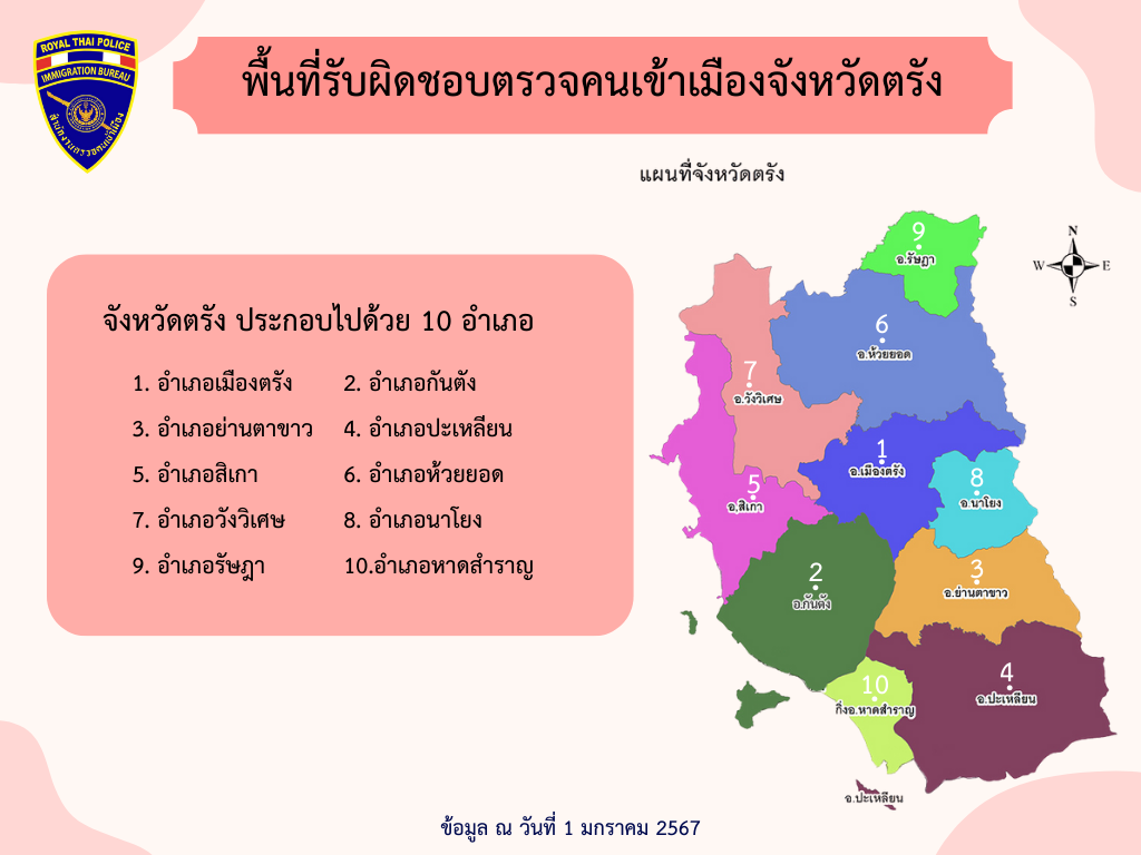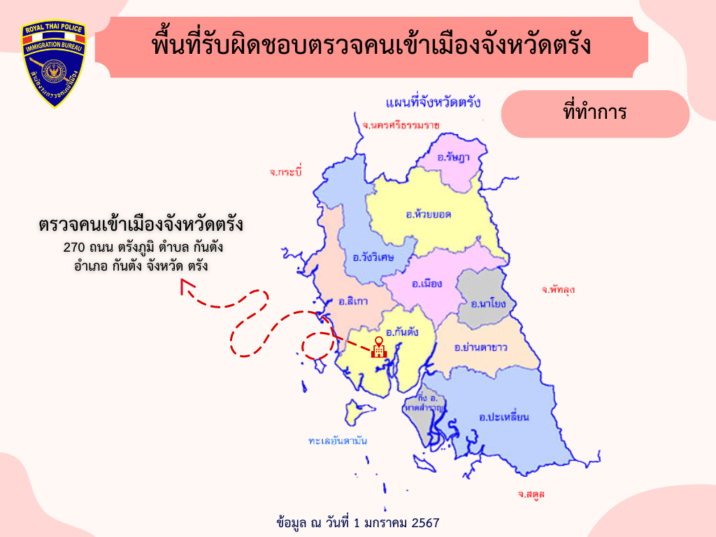 พื้นที่รับผิดชอบของตรวจคนเข้าเมืองจังหวัดตรัง