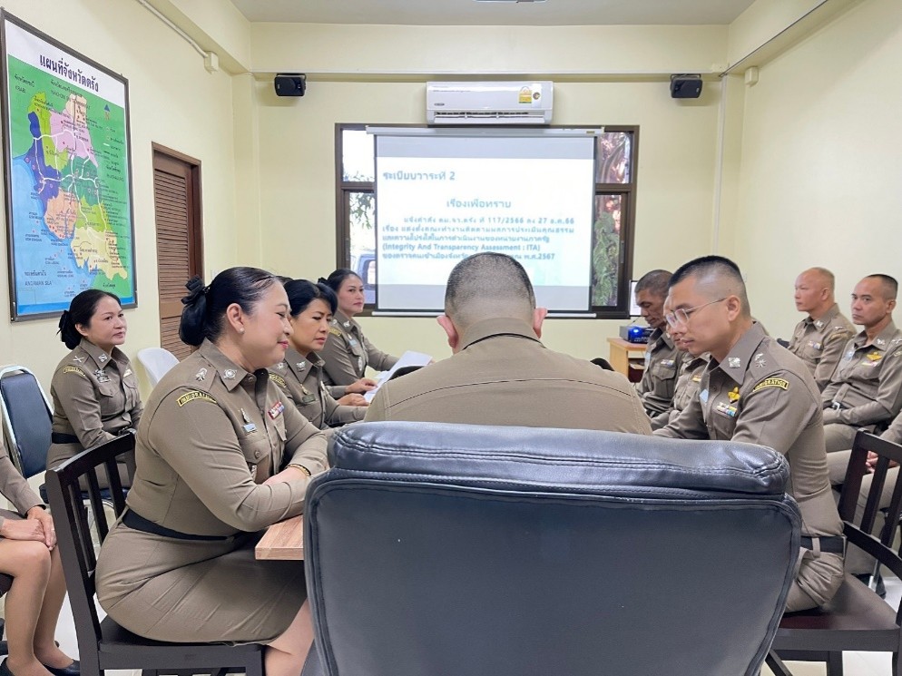 วันพุธที่ 13 พ.ย.67 เวลา 08.10 น. พ.ต.ท.ณรงค์ชัย เอกฉันท์ สวญ.ตม.จว.ตรัง ประชุมบริหารของหน่วยประจำเดือน พ.ย.67 พร้อมมอบประกาศนียบัตรให้แก่ข้าราชการตำรวจผู้ปฏิบัติหน้าที่ดีเด่นประจำเดือน ตุลาคม 2567 ณ ห้องประชุม ศปก.ตม.จว.ตรัง