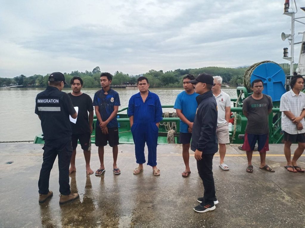 สัญชาติ MYANMAR 6 ราย, INDONESIA 3 ราย, MALAYSIA 1 รายเจ้าหน้าที่ได้ตรวจบริเวณโดยรอบและภายในเรือ ตรวจ SEAMANBOOK และหนังสือเดินทาง พบคนประจำพาหนะทั้งหมดเป็นบุคคลเดียวกัน และบันทึกลงระบบ BIO เรียบร้อยแล้ว ผลการตรวจสอบ ไม่พบการกระทำความผิดตาม พ.ร.บ.คนเข้าเมือง พ.ศ.2522, การบังคับใช้แรงงาน หรือแรงงานผิดกฎหมายแต่อย่างใด