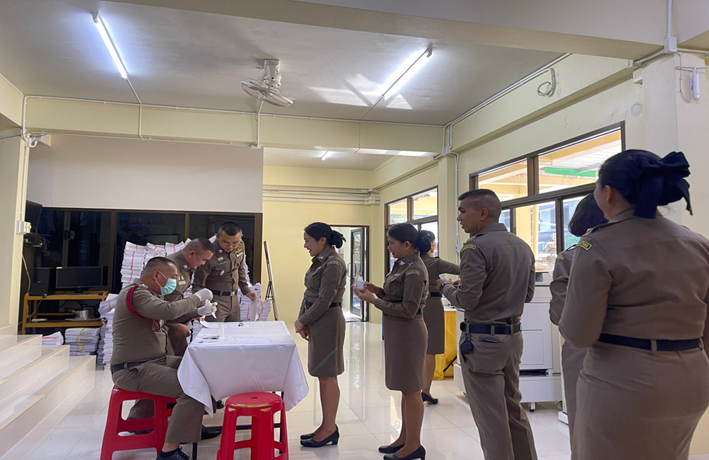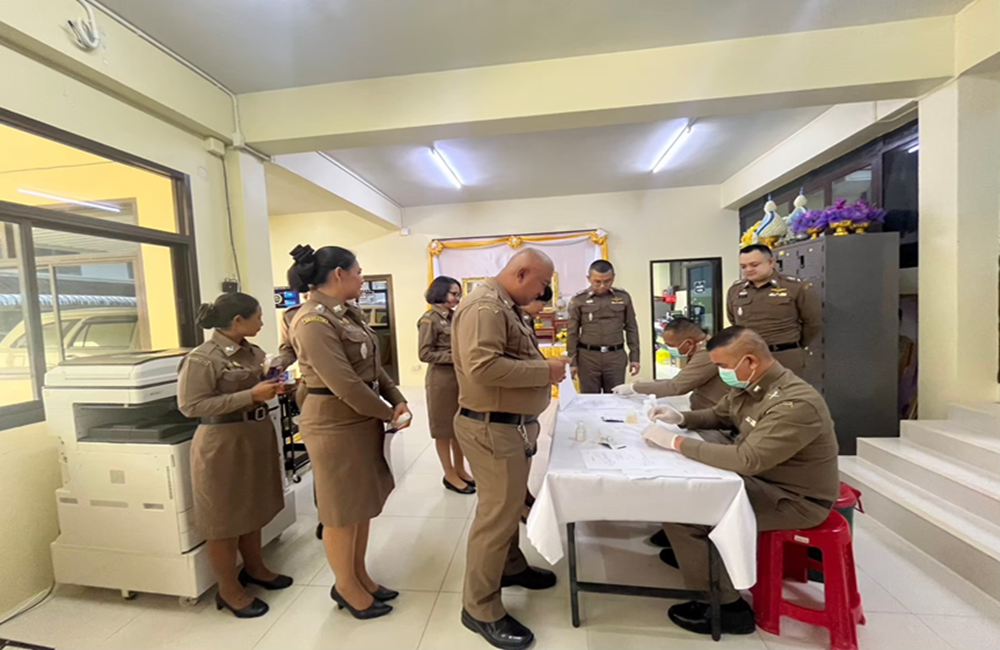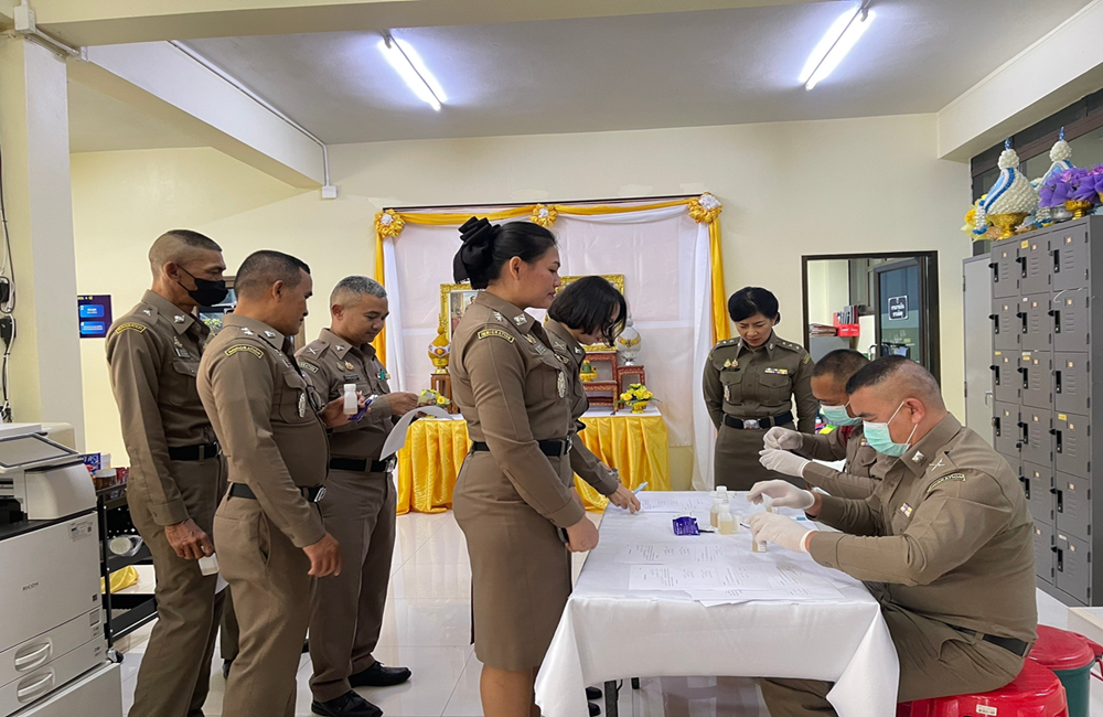 ตรวจหาสารเสพติด สุ่มตรวจหาสารเสพติดในปัสสาวะของข้าราชการตำรวจในสังกัด ข้าราชการตำรวจในสังกัดทุกนายมีผลการตรวจเป็นปกติ พร้อมทั้งกำชับไม่ให้ข้าราชการตำรวจในสังกัดยุ่งเกี่ยวกับยาเสพติดทุกประเภทโดยเด็ดขาด