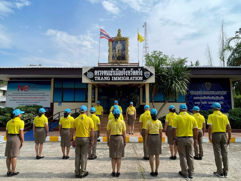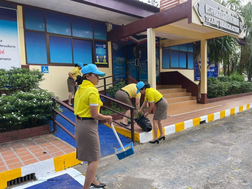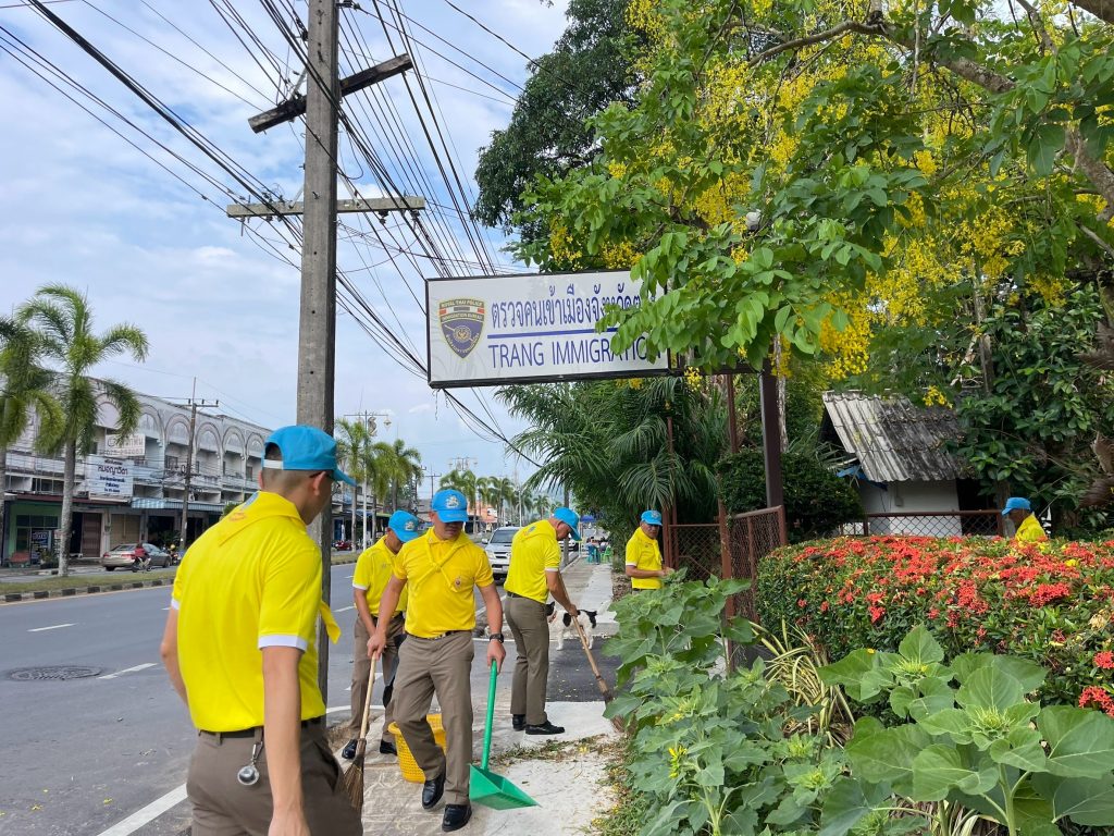 ร่วมจัดกิจกรรมจิตอาสา พัฒนาปรับภูมิทัศน์ ทำความสะอาด พื้นที่ และบริเวณ ถนนหน้าอาคารที่ทำการตรวจคนเข้าเมืองจังหวัดตรัง