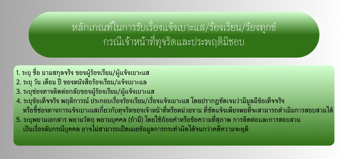 ช่องทางการแจ้งเรื่องร้องเรียนการทุจริต