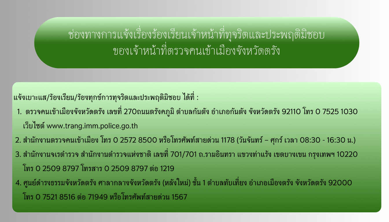 ตรวจคนเข้าเมืองจังหวัดตรัง TRANG IMMIGRATION