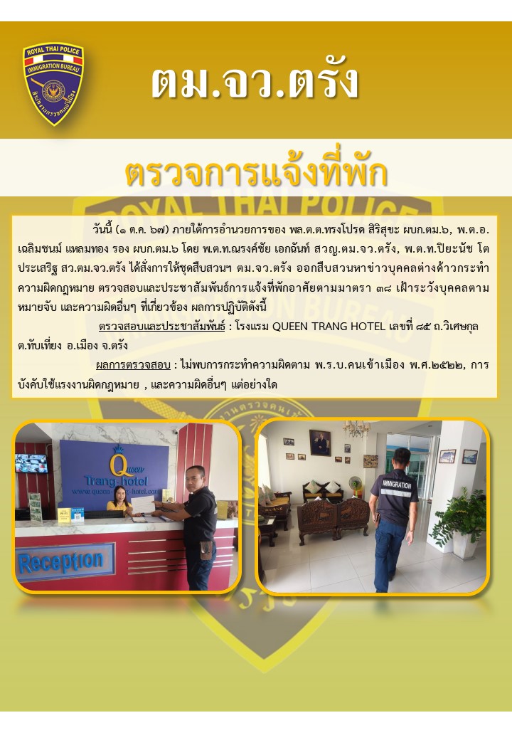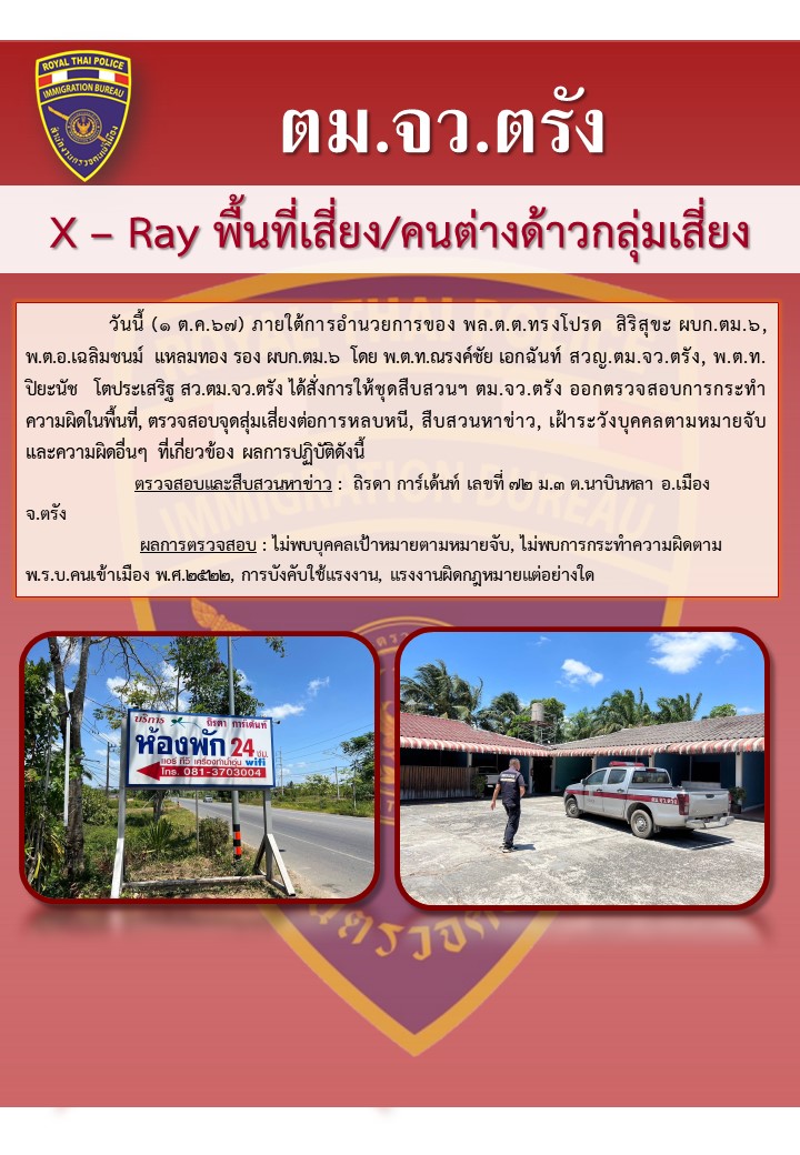 ตรวจสอบ สืบสวนหาข่าวบุคคลตามหมายจับ / ความผิดอ […]